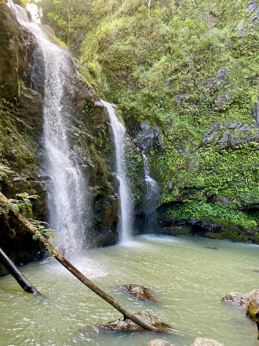 We continued our drive past Hana to the Ohe’o seven sacred pools. Along the way, we stopped at Wailua Falls and grabbed lunch at Huli Huli Chicken on Koki Beach.