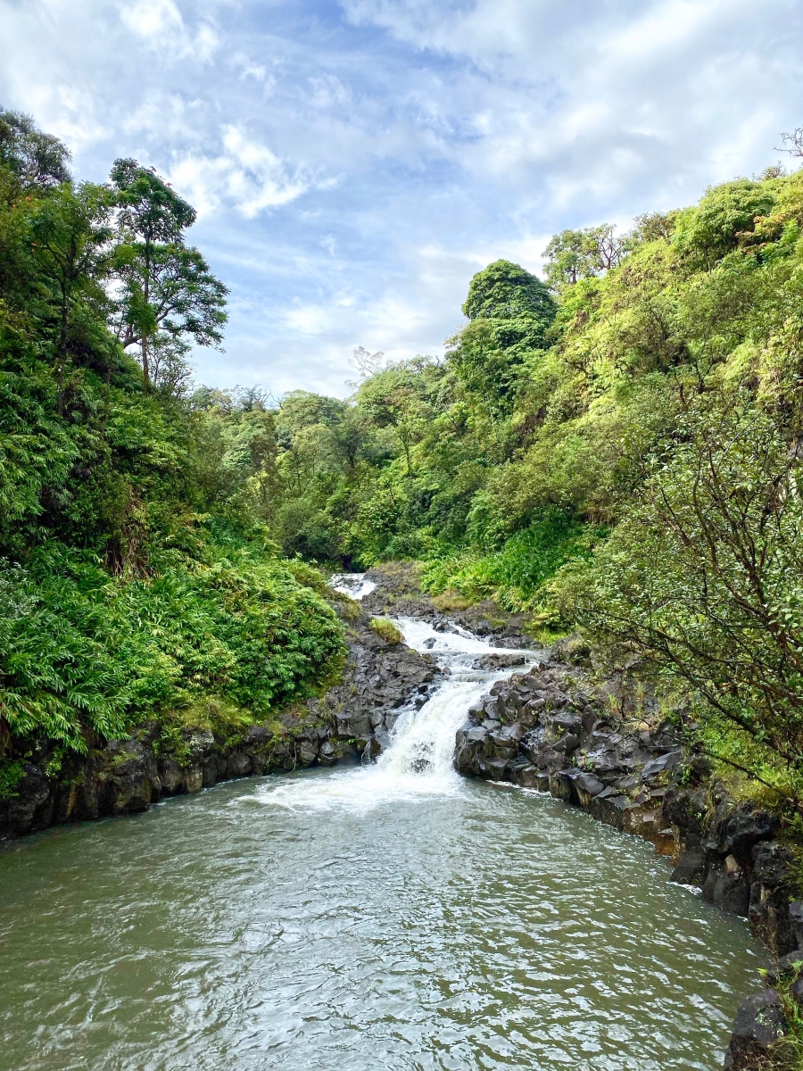 We woke up to a pouring morning in our tent. There was no sunrise to see but just greyness in the skies. We packed up as it rained and drove out of there as soon as we could. As we got further away, the skies cleared and we were able to stop at Hanawi Falls and Lower Waikani Falls. They were great stops to stretch our legs and use the restroom on our drive back. We also stopped at Twin Falls but didn’t go all the way to the upper falls (poor researching!)