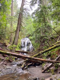 We headed towards Moran State Park, the gem of Orcas Island. This park is what really attracted me to visit. With the gloomy weather, we opted for the easy hike to Cascade Falls. It was a great way to stretch our overdue lazy legs. But, the misty rain kept the crowds at bay and the waterfalls flowing.