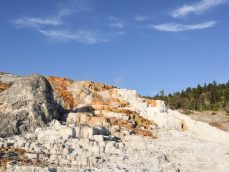 In the early morning, we finished our journey and arrived at our destination, Yellowstone National Park. Entering through the north gate, our first stop was Mammoth Hot Springs.