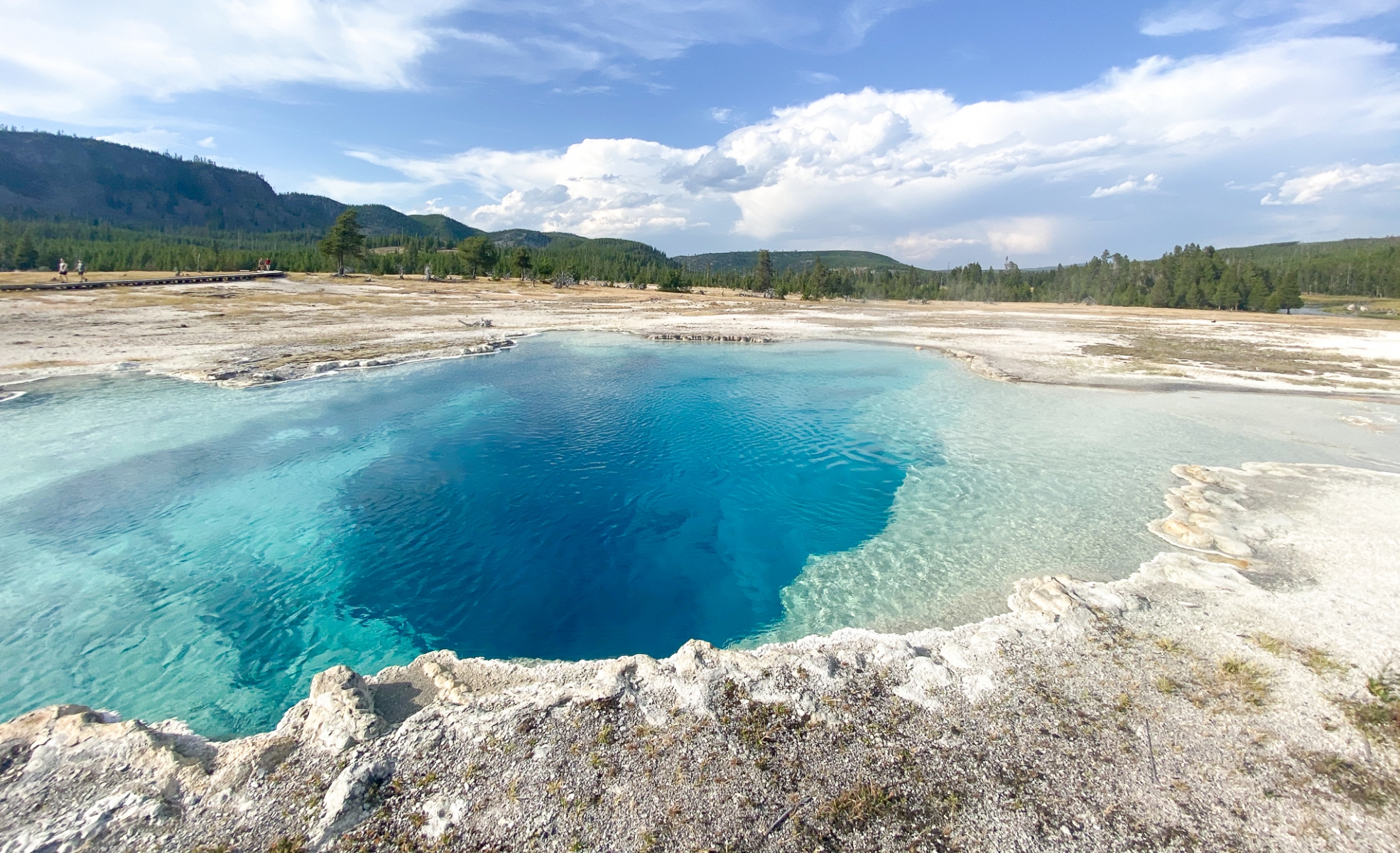 We were beat after the hike and it was getting hot. We headed back to camp to chill out and take a nap before exploring more. In the late afternoon, we ventured out again to Biscuit Basin near Upper Basin area. This was another thermal area which had our second favorite spring, Sapphire Pool.  It was vivid bright blue that looked falsely welcoming.