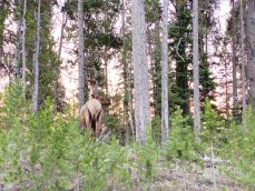 It was another early sunrise morning to beat the crowds at Yellowstone Canyon. We started our drive around 6 am and watch the sunrise across Yellowstone Lake. It was beautiful. We saw a female elk along the way, which Chi and I tried to snap a photo of.