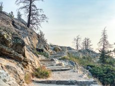 After that thrilling event, we continued up to Inspiration Point. We looked down at the bear, roaming around, eating his berries. We too ate our breakfast here, a minimally scented MRE. The sky was a hazy pinkish glow as the sun rose behind the smoke.