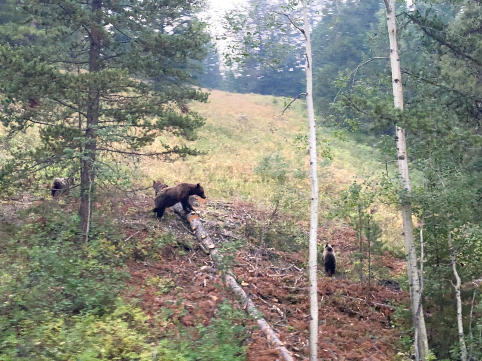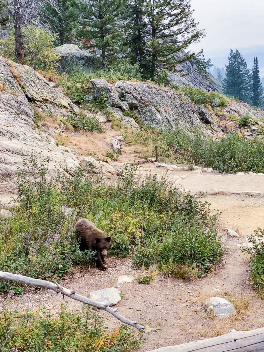 It was another early morning to catch the first ferry across Jenny Lake for a day hike to Cascade Canyon. Along our drive, we saw a grizzly bear and her four cubs. One of the cubs fell behind and rolled down a hill. He called out for his mom and it was adorable.