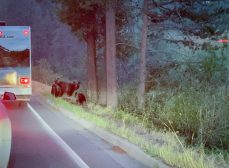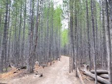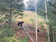 As we gained elevation, the golden sun was glowing upon us. It was a hazy sunrise but we were able to see Mount Owen. I was taking a photo of Chi and then as I finished, I heard a bush shuffle. I turned to it and suddenly saw a black furry figure emerge. It was a black bear! “It’s a bear… it’s a bear!” I firmly told Chi as he moved towards me and prepared our bear spray. We were both nervous and started backing away.