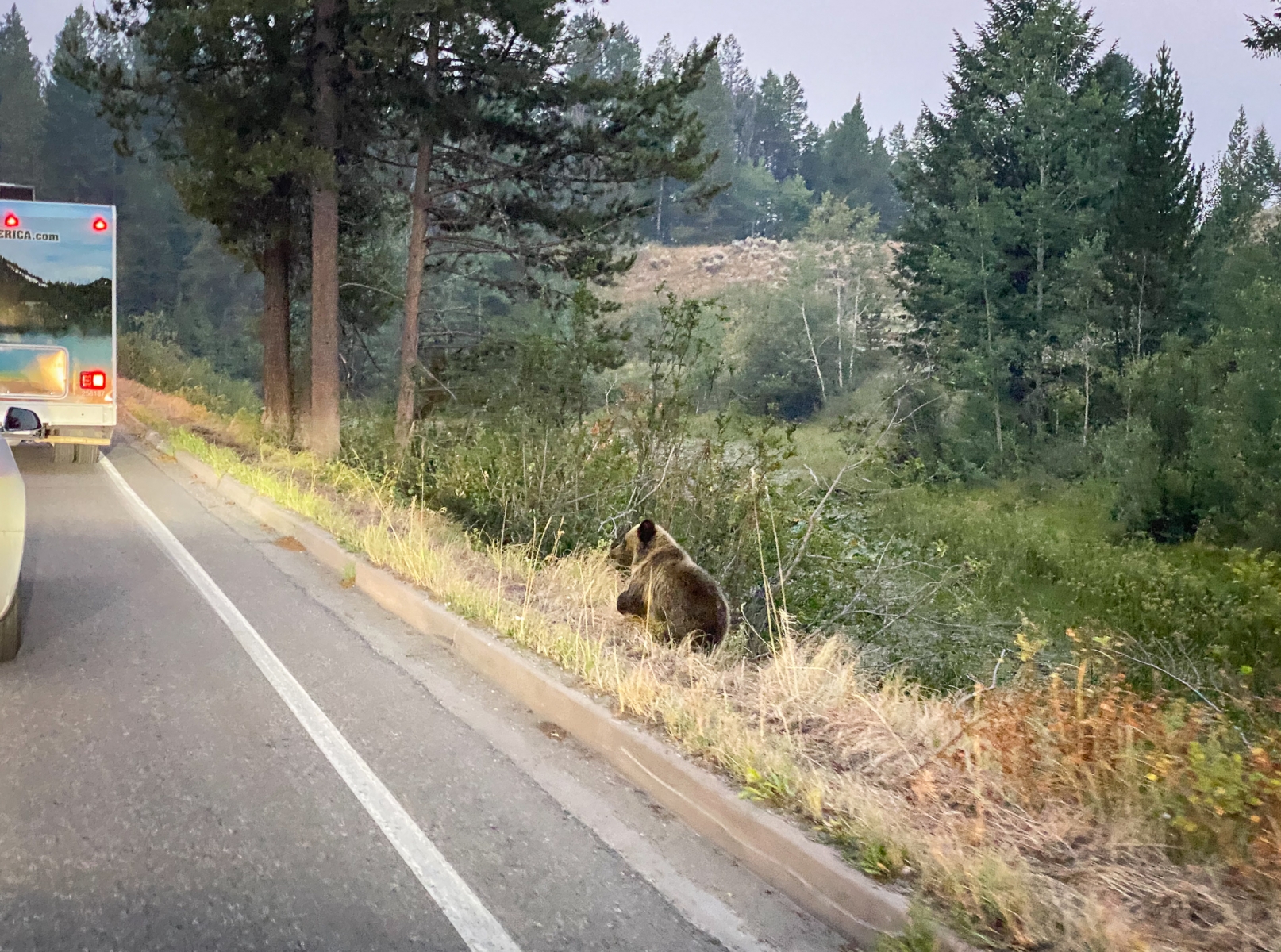 We packed up our camp at Yellowstone and drove south to the Tetons. As we entered the park, the views were beautiful but hazy. At first, I thought it was just morning fog but later realized it was smoke from the surrounding wildfires.