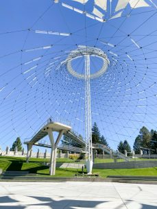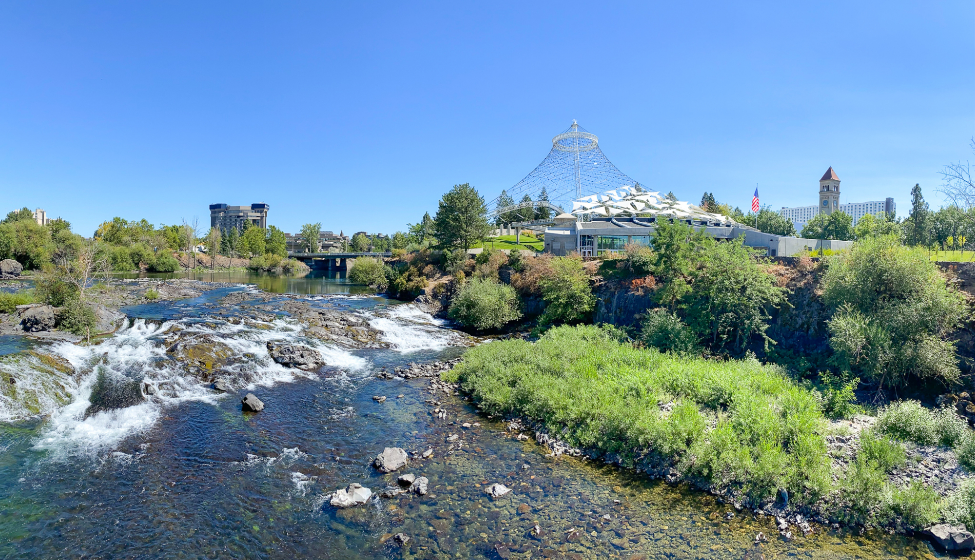 I had found a recommended bike trail called Route of the Hiawatha. Unfortunately, I didn’t plan this well enough to do it, so we’ll have to come back for this! We stopped in Spokane to eat my pho takeout at Riverfront Park. This urban park impressed both of us. The grass was lush and green. The garbage cans open by stepping on it. The park itself was clean and lovely. Chi really wanted to attend an electronic festival at the U.S. Pavilion.