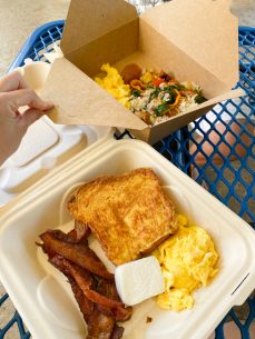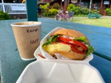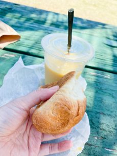 It was our first day in Kauai and we drove to Hanalei Bread Company for breakfast. Our breakfast sandwiches were delicious. We dined on the outdoor benches where the weather was warm and sunny. It felt so nice and after a year of limited roadtrip travel, this was a welcomed exotic treat.