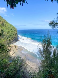 Getting to our turnaround point of Hanakapi’ai Beach was surprisingly rugged and hard! The two miles in was kicking our butt but it was a nice change of scenery from our usual PNW hikes. The beach wasn’t swimmable but a good spot to have lunch.