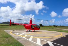 We checked into our helicopter flight and drove to the helipad for take-off. Our pilot was Noah and our red helicopter had no doors. This meant a very windy ride — so windy that you could barely hold your hand against the wind inside the door. But takeoff was gentle and smooth.