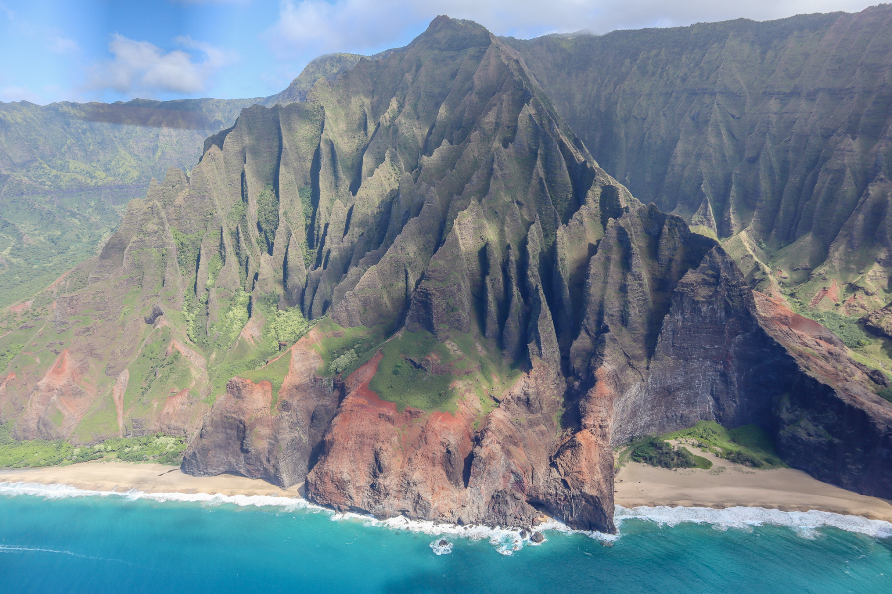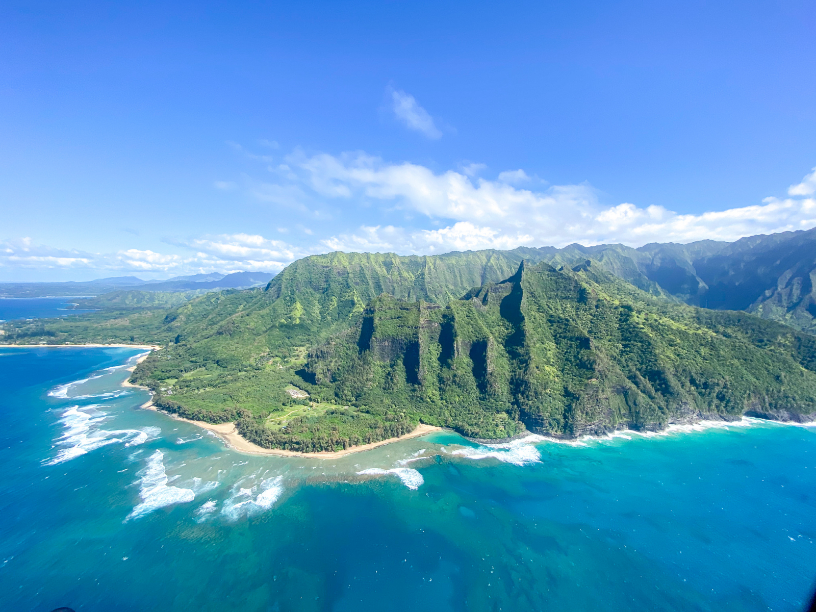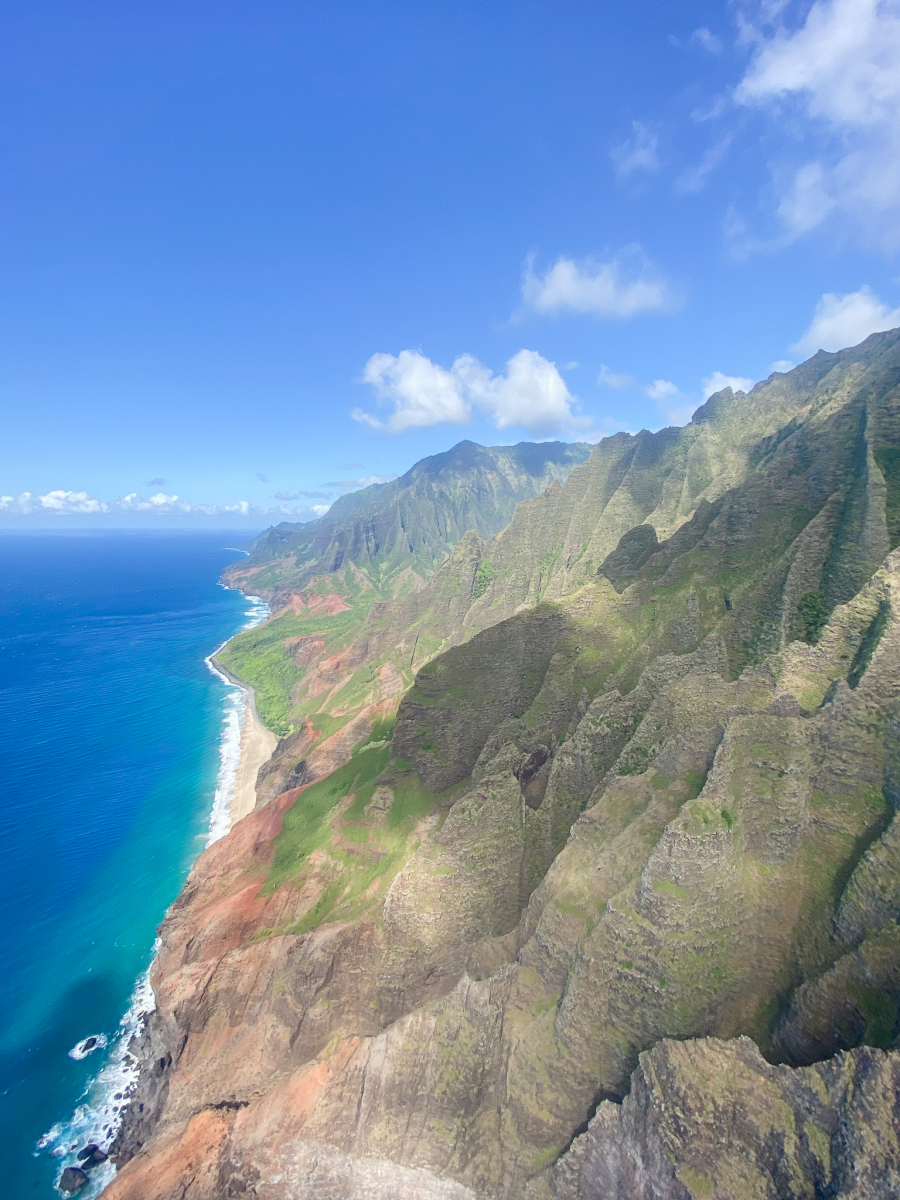 The views were beautiful. We flew over Waimea Canyon, saw Jurassic Falls, and then soared over towards the famous Napali Coast.