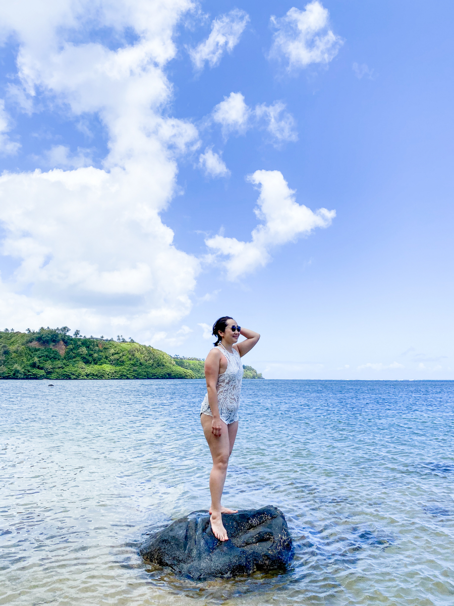 Afterwards, we ventured to Tunnels Beach. We parked near Haena Beach park and walked to a swimmable spot. It was a great beach with a scenic view of the mountain landscape. There was some snorkeling but I just enjoyed soaking in the sun, floating in the sea and taking in the tropical beach vibe.
