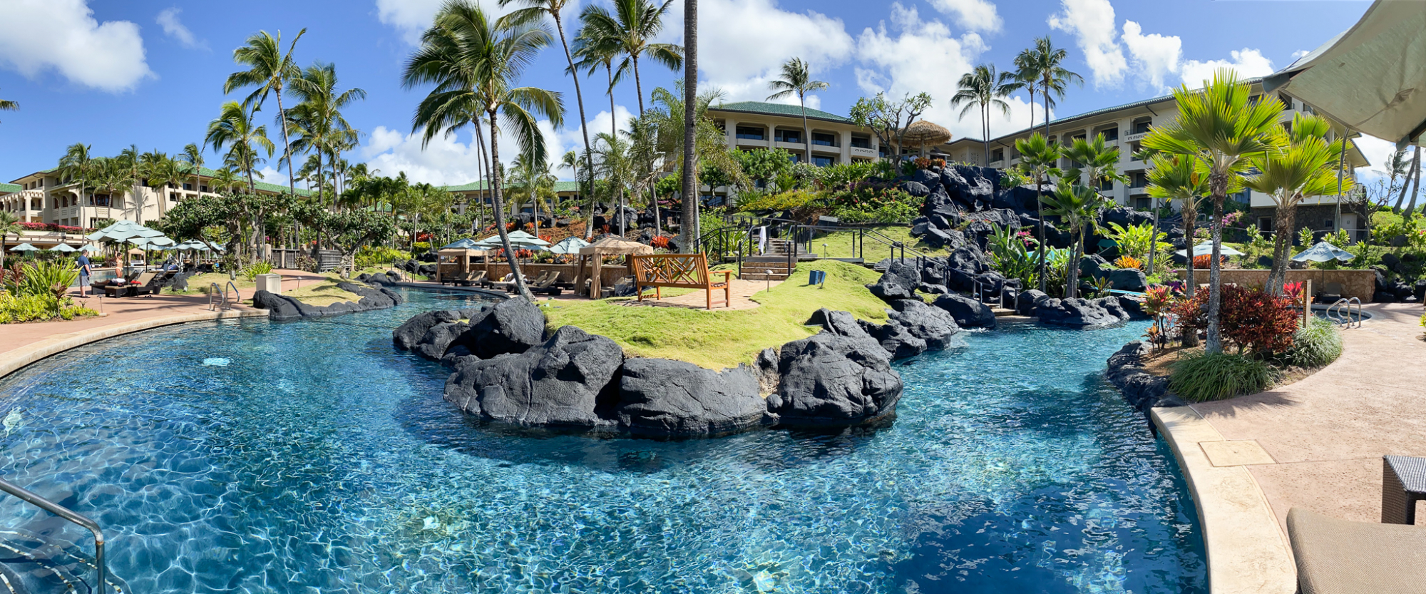We also switched our north shore hotel to a south shore resort, the Grand Hyatt Kauai Resort. This 5-star resort was a treat paid for by travel points and served our pent-up resort needs. The room was nice but nothing special but the lobby, pool, and grounds were remarkable.