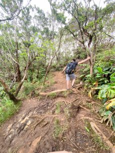 Instead, we headed to Pihea trail for an easier and shorter hike to view the jagged peaks. The first 0.5 miles were fun, easy, and had rewarding views but we couldn’t reach the 1-mile viewpoint due to slick muddy climbs. Yet again, we turned back. Returning hikers also told us the viewpoint is covered in fog so the endpoint wouldn’t even be worth the effort.
