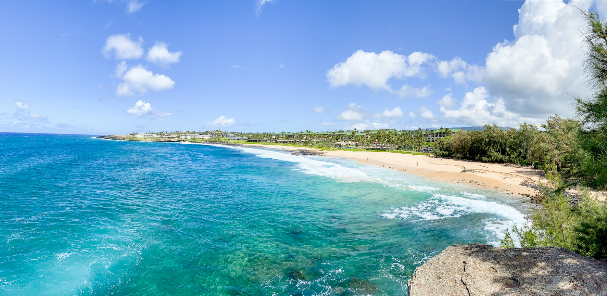 Once we got back to the hotel, we jumped into the pool to cool off. We then freshen up and then used the free bikes provided by our resort to get to the most popular beach on the south shore, Poipu.