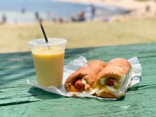 We had lunch at PukaDog, a Hawaiian hotdog joint. They had unique tropical relishes like mango, coconut, or starfruit and you pair it with homemade passion fruit mustard. Different but it was pretty tasty! The bun uniquely doesn’t wrap around your sausage, like your traditional bun but is a tube so your sausage slips inside! This way, your sauce doesn’t spill and ooze all over your hands.