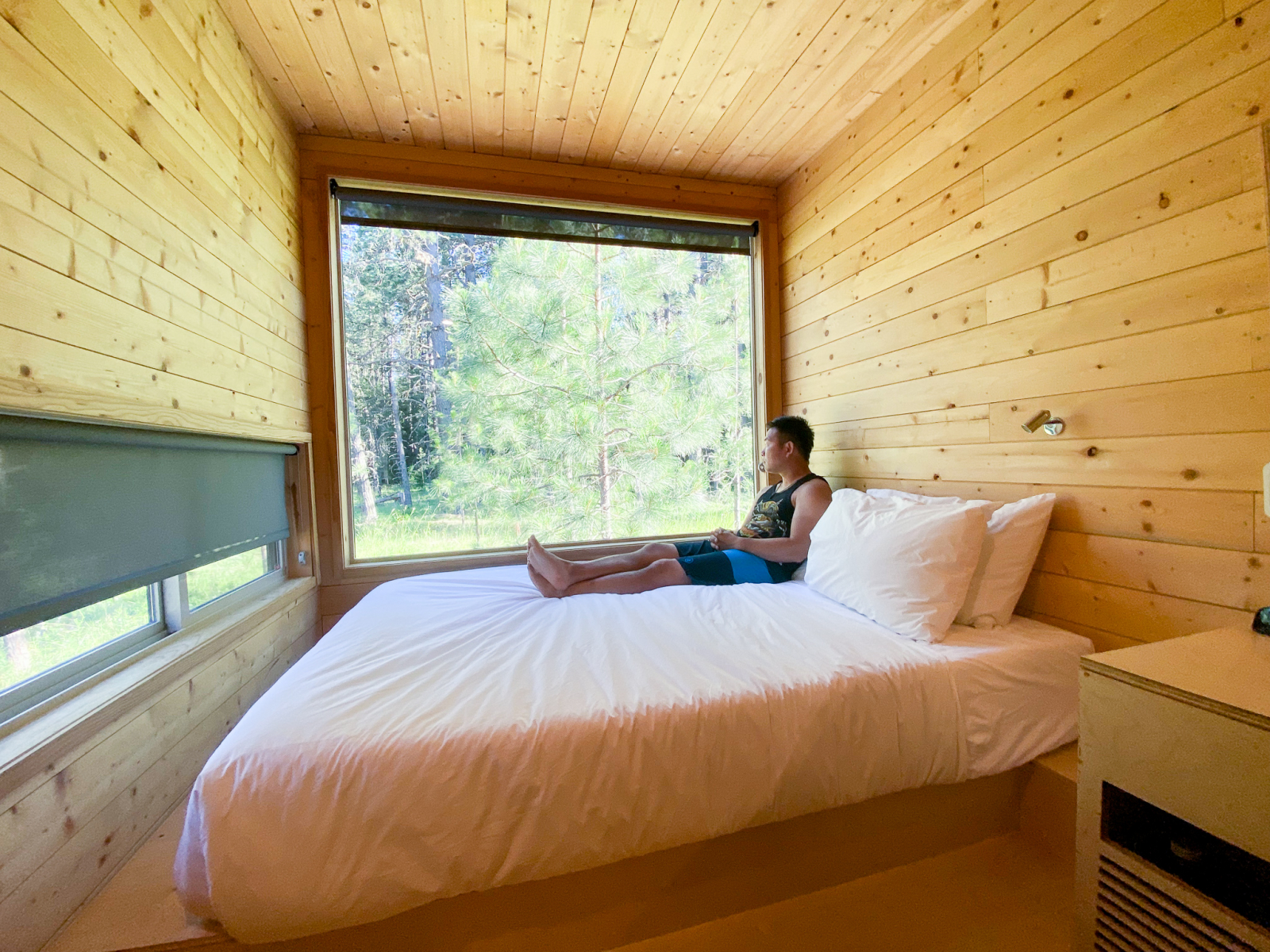 From there, we continued driving to Glenwood where our cabin was located. The cabin was beautiful and definitely to my aesthetic taste. I was so relieved to find air conditioning. There were also thoughtful touches such as under-bed storage and wall hooks. We loved it and were inspired to build a trailer like this one day.