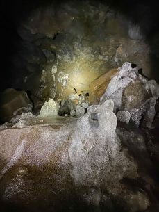 The cave instantly dropped temperatures to 42°F / 6°C. It was refreshing since the west coast was experiencing an extreme heatwave. We hiked the lower cave which was relatively flat and in complete darkness. It was mostly open and easy to explore until the end, where it got narrow quickly.