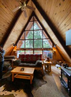 A month later, I stumbled upon a private sale of an A-frame cabin on Facebook. I was taken away by the exterior and we drove 3 hours to go see it in Packwood. This location was appealing and one of my original target markets. Packwood is a growing mountain town with summer Mt. Rainier tourists and winter White Pass ski crowds. But the biggest risk is the short-term rental market is saturated with lots of strong competition and there is local resistance to short-term rentals.