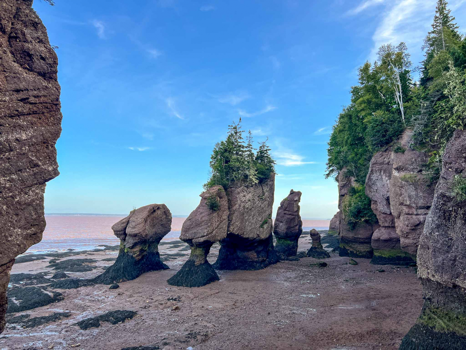 Around 5pm, we arrived at Hopewell Rocks during low tide to explore the ocean floor. It was neat to see these unique rock formations and the “chocolate” shore.